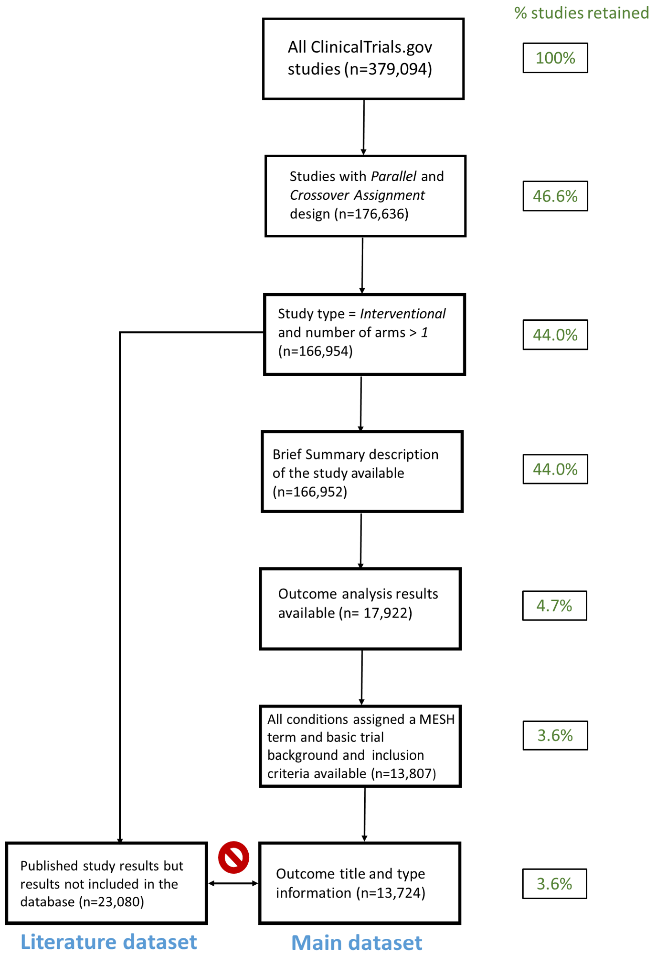 We found that only 11% of completed RCTs identified in ClinicalTrials.Gov submitted their results to the database. Similarly low coverage was revealed for Semantic Medline (SemMedDB) semantic triples derived from MR and RCT publications – 25% and 12%, respectively.